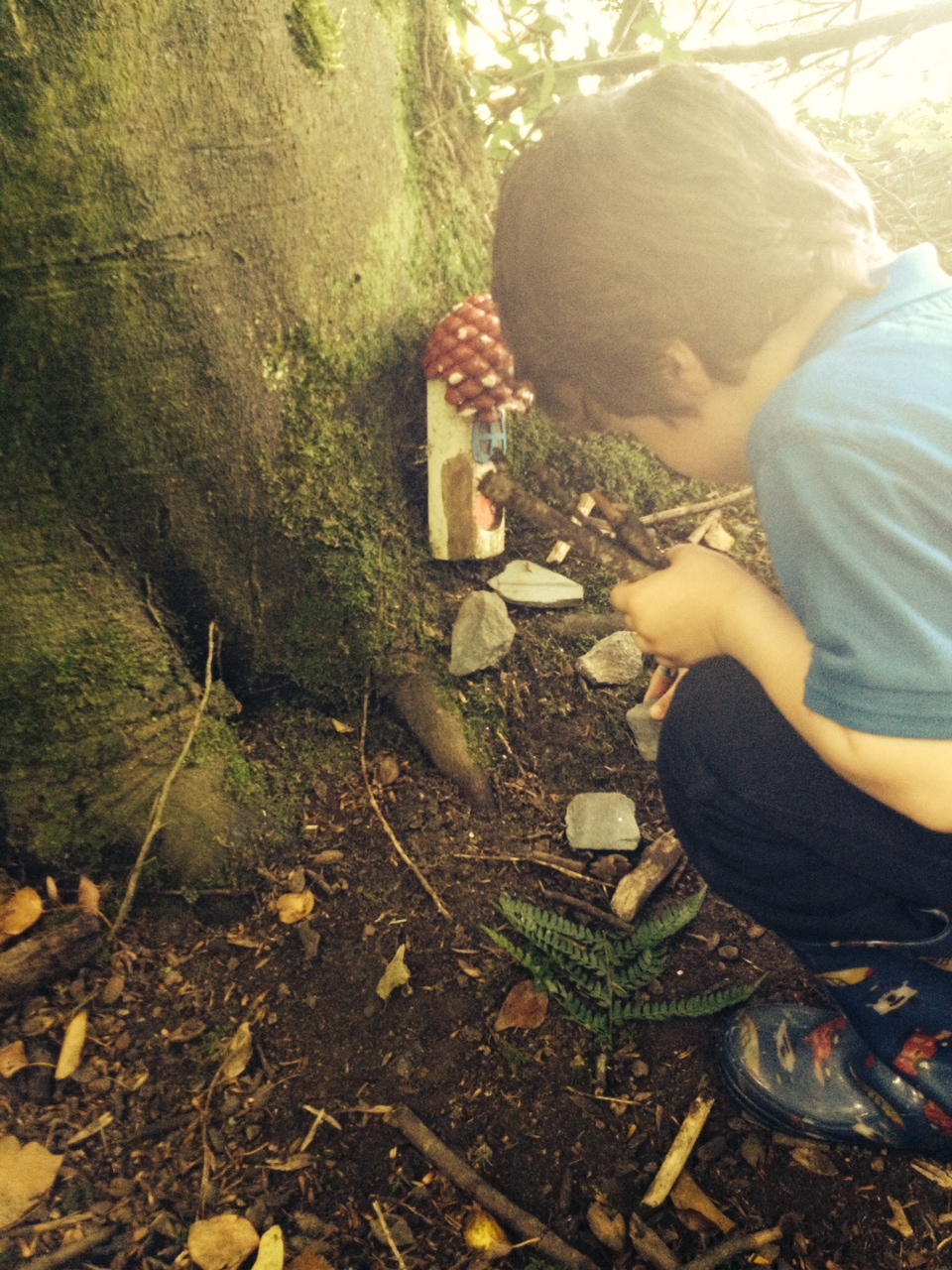After they’d left their gifts for the fairies, Dylan decided the fairies needed some firewood and started collected sticks and piling them at their doors! It’s great to see their little imaginations at work and they were so proud of their gifts for the fairies.